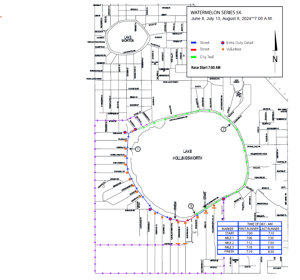 For everyone working at the start and finish: check in and meet up with the rest of your team in the lake parking lot (GPS - 929 Lake Hollingsworth Dr, 33803).